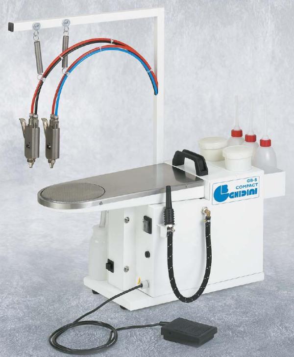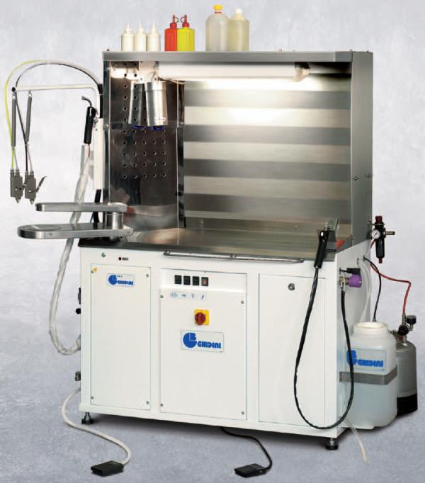 Arbeitsfläche aus Inox .Das Gerät ist serienmäßig ausgestattet mit einer Dampfpistole,