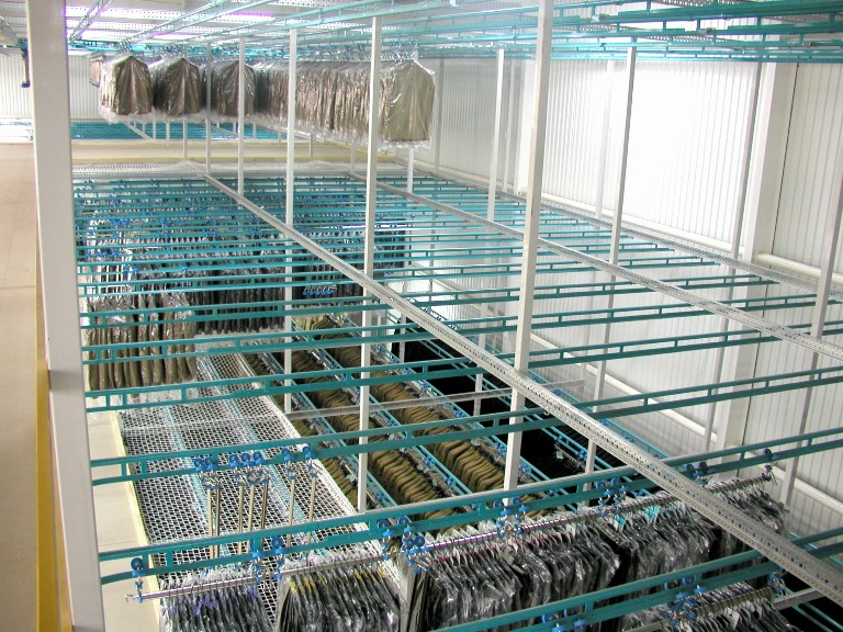 Die Hängefördereranlage ist besonders für die Bekleidungsproduktionen in die Bügelei